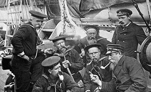 These old salts are aboard the USS Enterprize dated 1887. The photo is titled, "Spinning a Yarn". It just goes to show you that from Pre-Rev. War to long after the American Civil War soldiers and sailors were still enjoying a smoke from a good clay pipe.