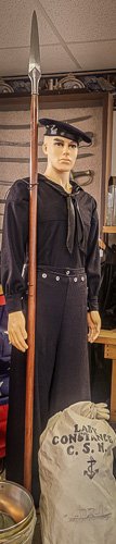 This beautifully crafted saber (Made by Windlass) is an exact replica of the U.S. Navy Officer's Saber model 1858. As it is pre-war it would have been common among both Union and Confederate Naval officers. The exacting detail is absolutely fantastic. I have seen none better. Belts can be found on page 10.