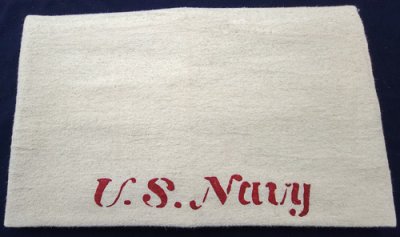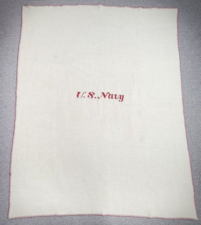 How long have we been waiting for this one? Finally a fantastic copy of the original CW period navy blanket. This blanket is 80/20 wool. It measures 66 inches by 90 inches. The blanket is edged with a red, heavy cotton blanket stitch. It weights 3 lbs. The US Navy stencil has been painstakingly copied from the original as has it's placement and even it's small mis-allignment of the the US and the Navy as they were each thier own stencil, not one continuous one. We stencil each blanket by hand. No Silk Screens! The last photo shows the original so you can judge for yourself. We are very proud to be able to offer this outstanding reproduction. We are sure you will be pleased with it as well.