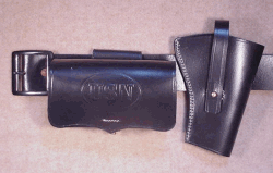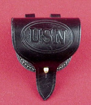 Here's a great new black leather navy belt rig. Made from high quality heavy black leather using superior construction techniques by skilled leather craftsmen. This rig is identical to the original and is sure to give you years of service regardless of how tough the conditions. They're really made to last! This belt rig includes holster, U.S.N. marked cartridge box with a 42 inch long belt (that's easily sized down) with the correct black iron buckle affixed. Just the thing to complete that U.S.N. or C.S.N. impression.