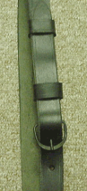 This leather canteen sling is by far the best I have ever seen on the market. I really like the black iron buckle. The sling is made from 2 pieces of top grain leather that are scarft, overlapped and stitched together. The stitching is great and it's long enough for even the tallest guy. Short guys like me may have to cut a little off the end to make your canteen ride correctly. We show this sling being used on a 1858 smooth side canteen. There are a couple of period photos showing filter canteens with leather slings. But this is by no means the only correct use for this sling. We do not sell filter canteens. The spout for the rubber hose just breaks off too easily as was the problem on the original.