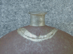 The best 1858 stainless canteen ever. This repro is great! You can lay it down next to an original (I have & you should). The measurements are perfect. But here is the best part. It has a lead free pewter spout, no one else is producing a stainless canteen with the correct spout! The shoulder strap is 100% cotton that has been folded and sewn. The canteen itself is made from stainless steel. It comes with a cork and chain but there has been no, I repeat, no hole drilled in the canteen for the chain to go in. You can drill one or fasten the chain through the bar that holds the shoulder strap on. If you want to throw the chain away and use a string as so many of the hard core are doing and your good to go. We have them covered in grey wool, fed. blue wool and uncovered. All with the correct strap. This is one of the best canteens on the market. Super material and craftsmanship not to mention the authenticity. You will not be disappointed.