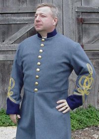 All of our double breasted frocks come with the appropriate collar rank and Confederate Staff Officers buttons sewn on .