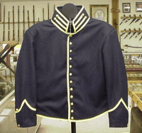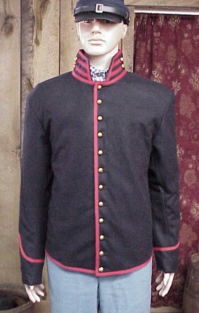 The 1858 pattern cavalry shell jacket was issued throughout the entire war. This is the same jacket that was issued to Wilder's "lightning brigade" of mounted infantry in June 1863 in Murfreesboro Tn. the first thing the mounted infantry did was to cut the yellow tape off the jacket as they did not want to be confused with Cavalry.