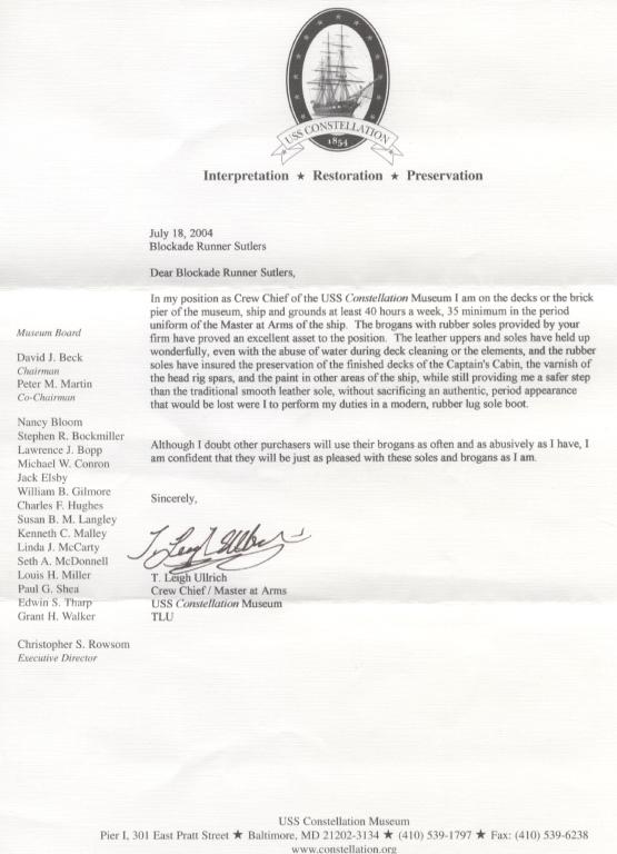 These are the most comfortable brogans on the market to date. There is no breaking in time! They're comfortable from the first step. An exact copy from a shoe dug at a Union training camp in Indiana. They even have pegged leather soles as per the originals. Made of black ruff side out leather just like the originals. Sizes from 8 through 13 regular. They come with a full one year warranty that covers everything except fire damage or abuse.