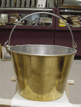 Brand new tin lined 2 gallon brass bucket. Yes, tin lined means food safe even for acidic foods like tomatoes. Face it people, there is no good soup without tomatoes.