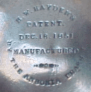 This style of bucket has been found in camp sites dating before the Rev. War. We chose to mark ours in the style of the Hayden 1851 patent showing that it is a pre-C.W. design. I think Hayden's patent was only an "improvment" patent as the bucket predates 1851 by 100 years.