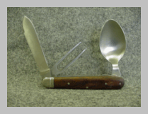 Here is a great repro of a private purchase folding knife, fork and spoon. Although these were never an issue item there dug in every theater of operation in camp after camp. I have owned several originals myself.