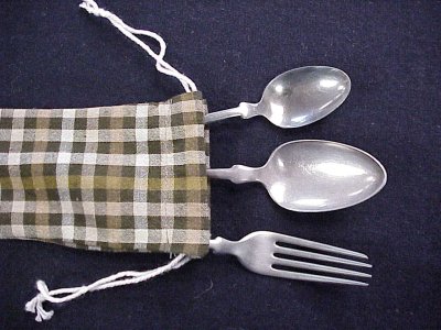 Finally a great looking reproduction of original style cutlery. This knife fork and spoon set is copied from the most common style you would find during the war. It's very simple and with a little use and age, it will look just like the original without the cost! And it won't be a heart breaking experience if you lose one of these.