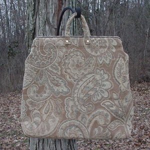 Here is an item that I am very glad to have back in stock and made by a new manufacturer (us) who has taken great pains to make this bag as authentic as possible. It's 100% heavy cotton exterior is very similar to the original in our collection. The bag is lined with 100% cotton lining. It measures 18 inches tall and 23 inches wide. The width is 6 inches at the bottom. Easily large enough for two changes of clothes with room to spare. This is without a doubt the best reproduction of a carpet bag I have ever seen offered for such a reasonable price! There will be some variation in material designs from bag to bag.
