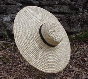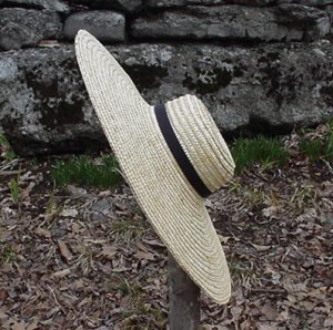 Our new Sun Hat measures 20 inches across, it is absolutely charming and will lend a very "home spun" aire to your impression. We recommend this hat highly for all who's impression is that of a more self sufficient lady who is not afraid to work in her own garden or care for her own children. However would it not be just as appropriate for a garden party? Worn by those showing thier support for the war effort. Wearing locally made goods rather than imported fine braid Italian sun bonnets. Which by the way could not be had due to the blockade.