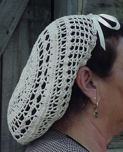 These snoods are probably the most widely worn variety in the hobby today, why you might ask? Because they are so very inexpensive. At any event you attend you can safely wager that over half the heads there who are wearing snoods are wearing this snood.