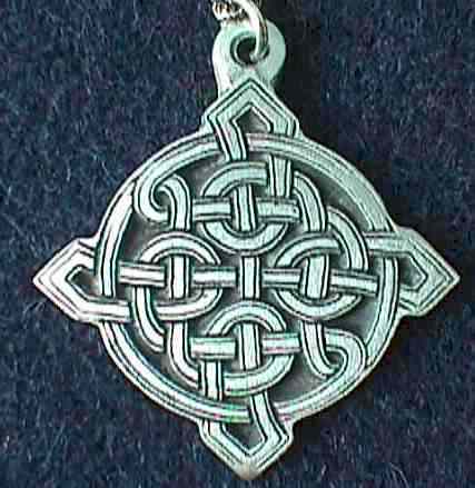 THIS KNOT WORK WAS USED TO DECORATE COMMON HOUSE HOLD GOODS AS WELL AS THE MOST TREASURED BELONGINGS. THIS DESIGN IS TAKEN FROM THE BOOK OF KELL'S. THE INTRICATE PATTERN IS MADE TO PROTECT THE WEARER FROM THE "EVIL EYE", MAGIC SPELLS CAST BY YOUR ENEMIES TO DO YOU HARM. THIS BEAUTIFUL KNOT WORK PENDANT IS CAST IN 100% LEAD FREE PEWTER BY A MASTER CRAFTSMAN IN A SMALL SHOP IN THE MOUNTAINS. THEY ARE NOT MASS PRODUCED. THE FINE QUALITY OF THIS PIECE IS THE RESULT.