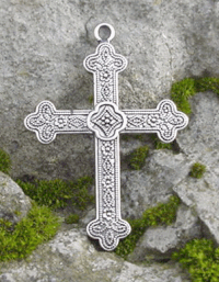 This beautiful Pewter Cross is one of my favorite designs. Very "Olde World". It shows definite signs of Spanish/Italian influence. This really is a timeless piece of jewelry. Popular in the new world from the 15 Century on. Crosses of this design has been recovered from almost every shipwreck found along the Florida Coast. And it has retained it's popularity throughout the Victorian age as can be seen in many photos of the period.