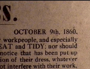It is always a pleasure for us to see our workpeople, and especially our comely young women, dressed NEAT and TIDY; nor should we, as has already been declared in a notice that has been put up earlier, wish to interfere with the fashion of their dress, whatever it may be, so long as their dress does not interfere with their work, or the work of those near them in our employ.