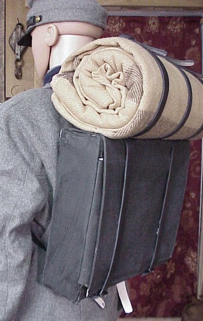 Our pre-war hardpack wooden framed knapsack would be one of the most often seen styles of knapsack during the early war years. This was the standard of many pre-war militia units both north and south as seen in countless photos of the era. All Confederate gear was copied from pre-war Union goods with the exception of goods that ran the blockade so even Southern manufactured goods would often be of this style. For Union troops the hardpack would be replaced by the soft pack as the war drug on.