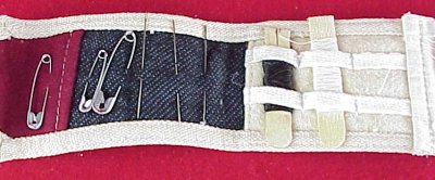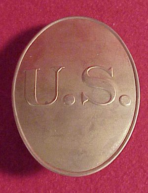This 1819 model bayonet baldric buckle would have been seen on the US Regulars as well as many militia units up to and even after the US/Mex war. Remember, militias like the National Guard often get the "hand me downs" from the US Regulars and use them long after US reg's have changed. This buckle has a tin back with iron hooks.